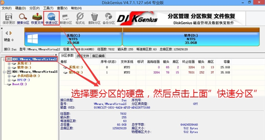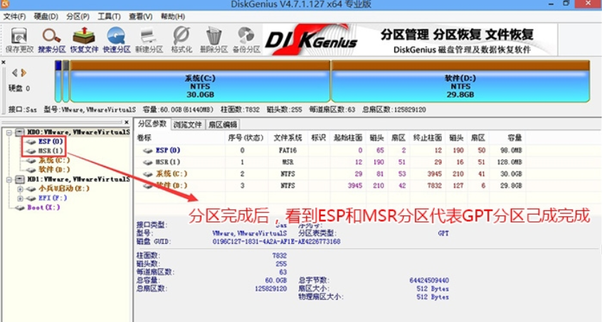 注意:1,如果当前硬盘己经分区且存在esp和msr分区,代表己经是guid(gpt分区)了,可以直接跳过此分区步骤。2,重新分区会导致数据丢失,请谨慎重新分区。