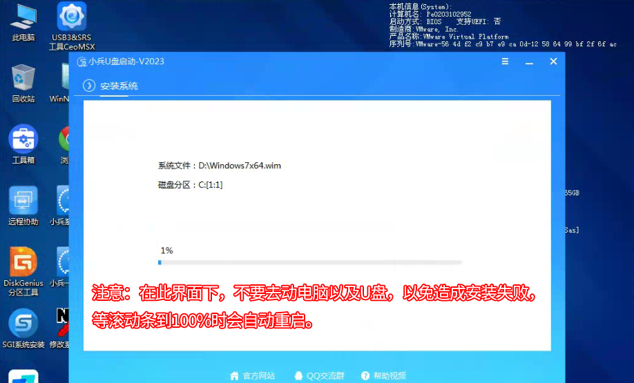 4,自动重启时记得拔掉U盘,拔掉U盘重启后系统会自动完成后续的程序安装,直到看到桌面,系统就彻底安装成功了,如果进入系统后驱动不完整可以点击桌面的驱动总裁补全驱动。