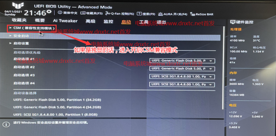 答:检查主板是否开启csm兼容模式,目前组装机主板都可以开启csm兼容模式。如果华硕b560主板采用独显的情况不开启csm兼容模式,就会导致独显驱动无法正常驱动。另外支持win7的N卡只支持40系列以下。