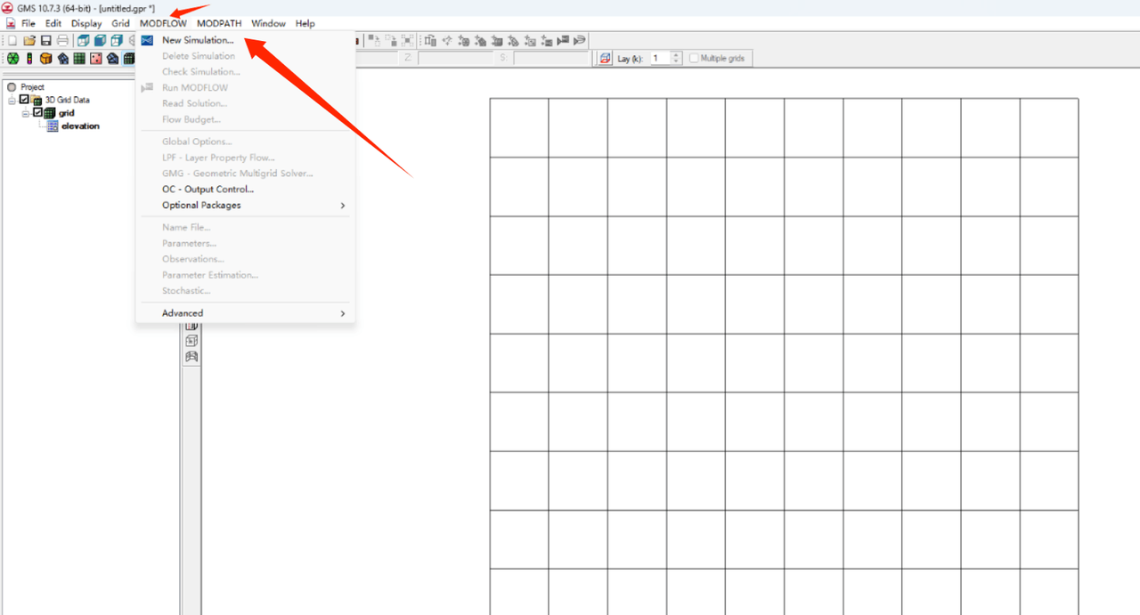 MODFLOW: 下拉菜单,指示该网格是为 MODFLOW 模型创建的。MODFLOW 是一种广泛使用的地下水流模型。
