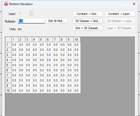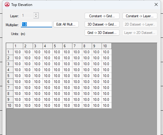 Starting heads equal grid top elevations (初始水头等于网格顶部高程): 如果选中,模型将自动将每个单元格的初始水头设置为该单元格顶部的海拔高程。当前已选中。