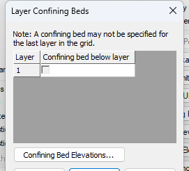 Confining Beds… (弱透水层…): 点击此按钮将打开一个对话框,用于定义模型中的弱透水层(夹层)的属性。