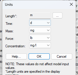 Units… (单位…): 点击此按钮将打开一个对话框,用于定义模型中使用的长度、时间和流量单位。