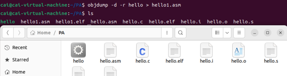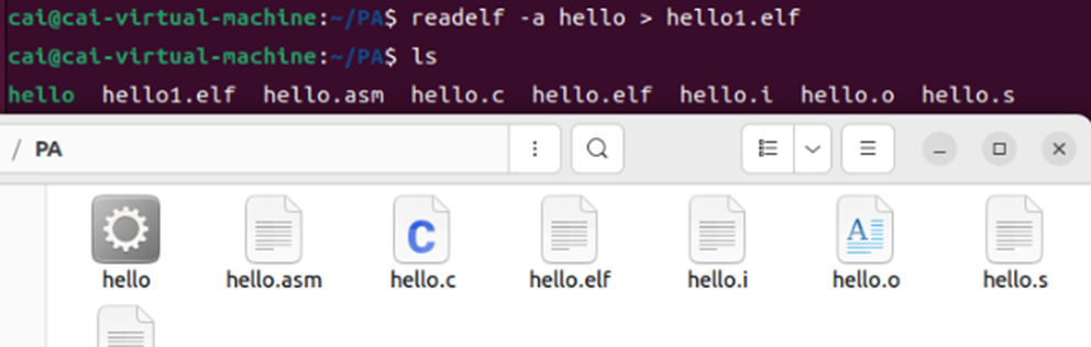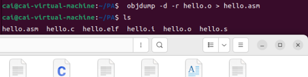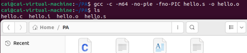 任务:将hello.s中的汇编指令转换为机器码,生成可重定位目标文件hello.o,包含代码段(.text)、数据段(.rodata)和符号表。