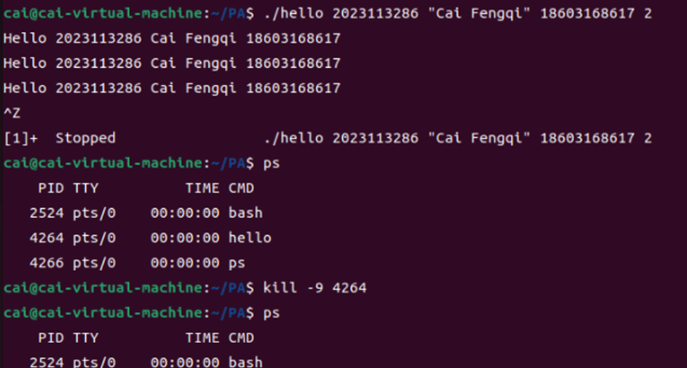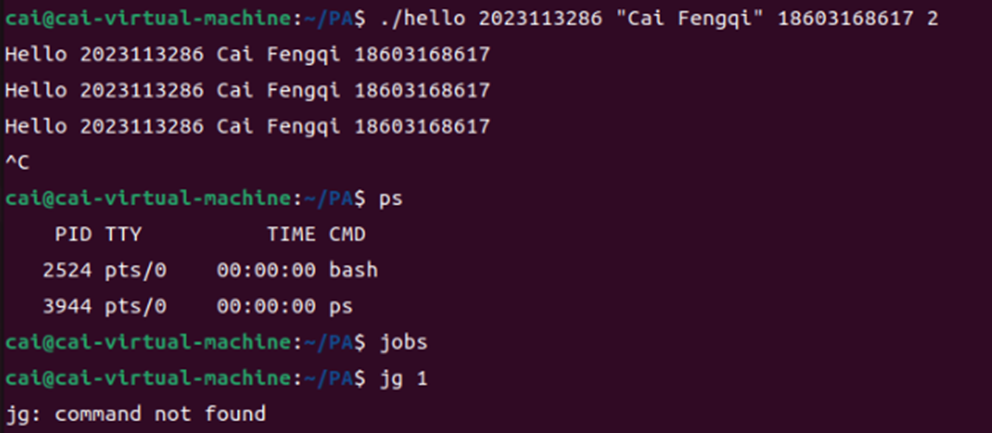 任务:Shell调用fork()创建子进程,execve()加载hello的代码段和数据段,CPU调度执行指令,处理信号(如SIGINT、SIGTSTP)。