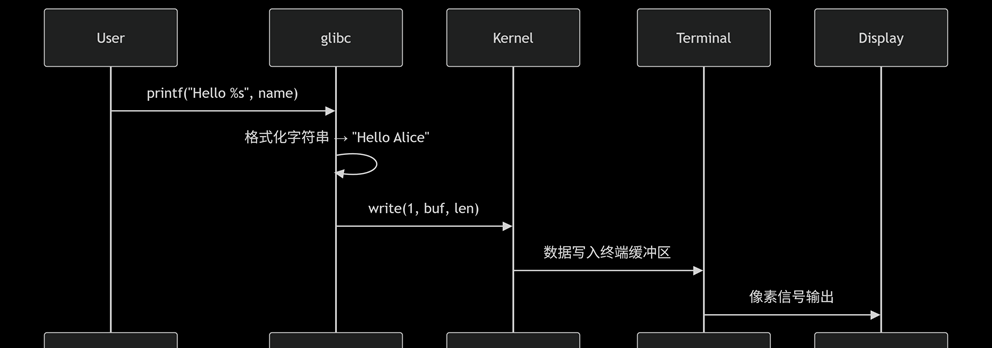 printf是标准库(如glibc)提供的格式化输出函数,其实现分为以下阶段: