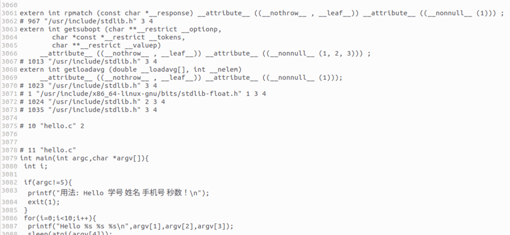 任务:通过宏替换、头文件展开、条件编译和注释删除,将hello.c转换为纯C代码hello.i。