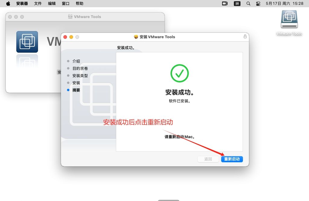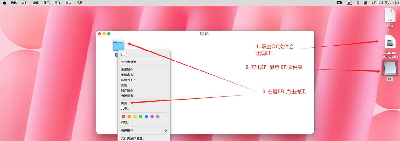 重启完成后 在主机创个文本.txt拖拽到mac系统中 在mac系统中会弹出提示根据提示配置开启工具 – 然后关机