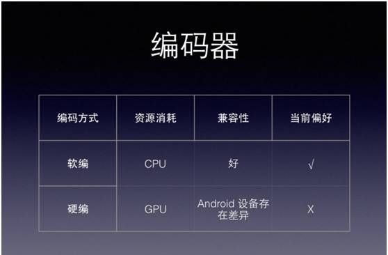 另外就是 Android MediaCodec 硬编层面的 H.264 编码画质参数是固定的 baseline,所以画质通常也一般。因此,在 Android 平台下,推荐是用软编,好处是画质可调控,兼容性也更好。