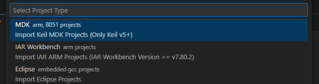 注意:EIDE对Keil的工程有一些兼容性问题,只有符合下面要求的工程才能够导入(官方描述):