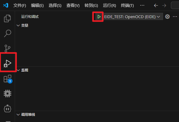 好的,现在我们就可以启动调试了,你可以按下F5直接启动调试,也可以在VS Code左侧进入运行和调试界面然后点击绿色的播放键启动调试: