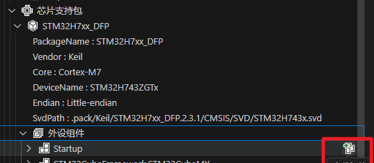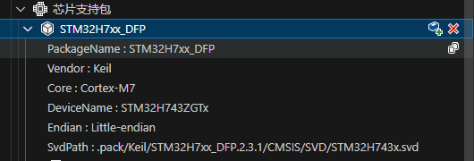 这里的芯片支持包和大家在Keil包管理器中安装的那个DFP包是一个东西,他对咱们咱们工程有什么影响呢,EIDE官方是这样说的:
