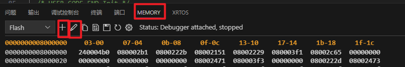 7.这个区域就是内存查看器,你可以在这添加要查看的内存视图并且可以通过右面的设置按钮重命名,同时也支持一些复制和保存等操作: