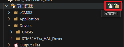 如果想要添加文件或者文件夹可以将鼠标悬停(或者右键)在项目资源这一栏,然后点击右面的图标进行添加: