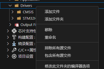 如果想对已经在项目中的文件(夹)做添加或修改,可以在对应的目标上右键。另外值得说的是,将鼠标悬停在项目文件或者文件夹上可以发现右面有两个图标,一个是刷新,另一个是排除: