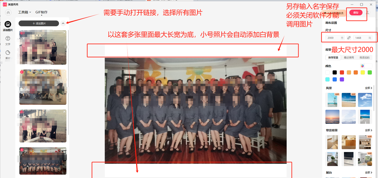 2、导入后的照片背景大小,默认为全部导入照片中最高、最宽的图片尺寸,导致一些小一点的照片会出现难看的白边。