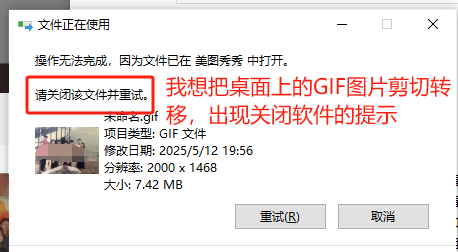 6、需要转移GIF图片时,必须关闭美图软件,才能调用GIF图片
