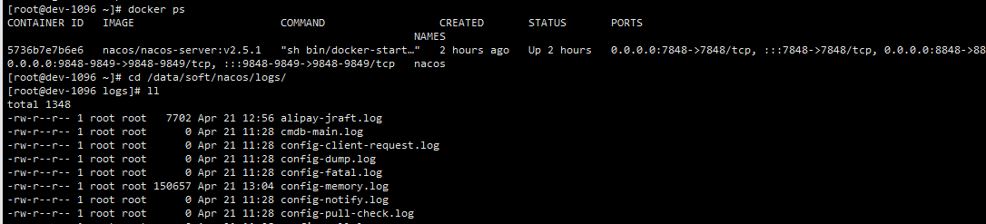 ls /root/docker/nacos/data # 应看到数据库文件(如使用内置Derby)