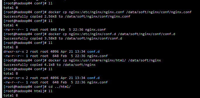 [root@192 nginx]# docker cp nginx:/etc/nginx/conf.d /data/soft/nginx/conf