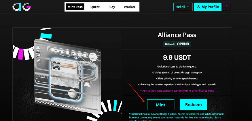 打开下面的链接,连接钱包并Mint通行证
