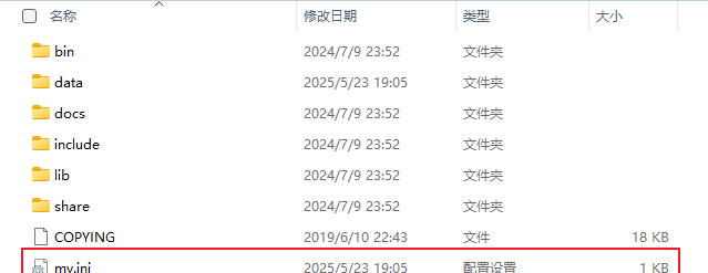 MySQL 8.0 及更高版本:C:ProgramDataMySQLMySQL Server 8.0my.ini