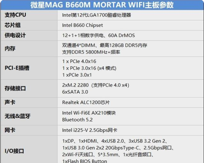 微星b660m主板参数介绍(己微星MAG B660M MORTAR WIFI主板为例)