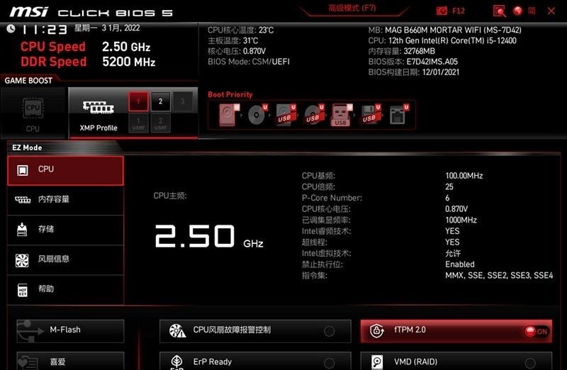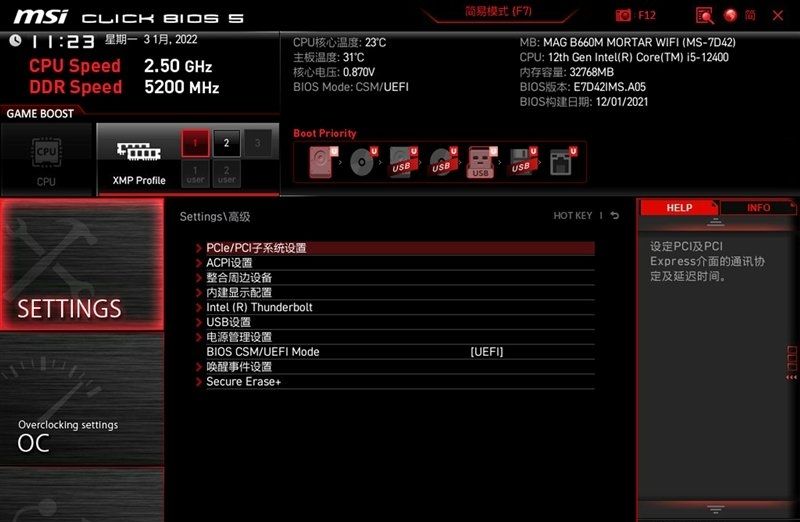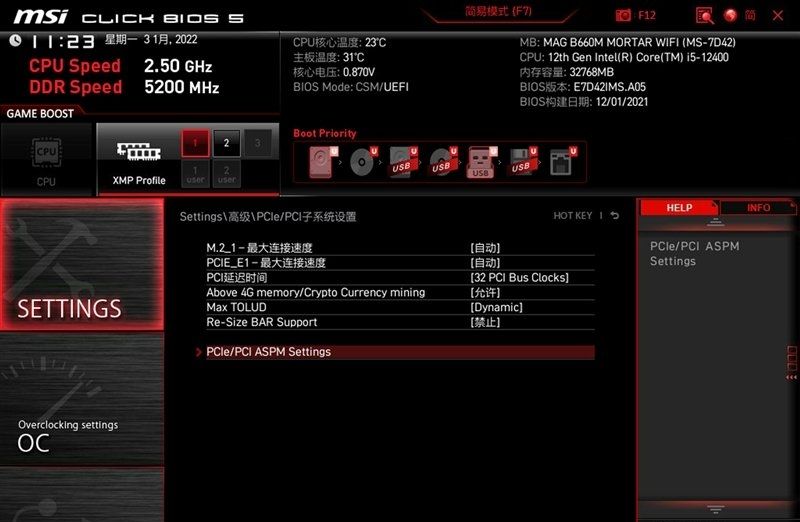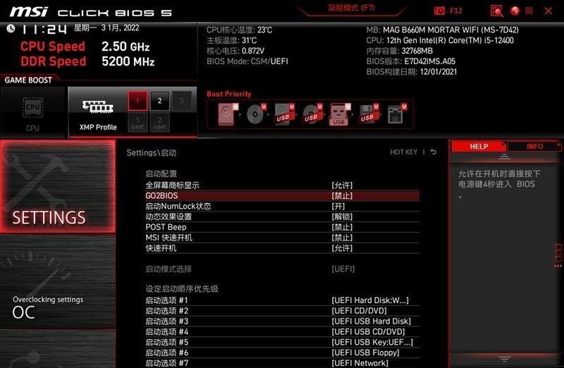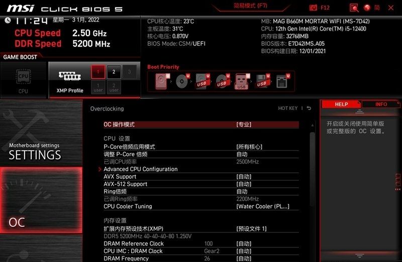 微星b660m主板bios介绍(己微星MAG B660M MORTAR WIFI主板为例)