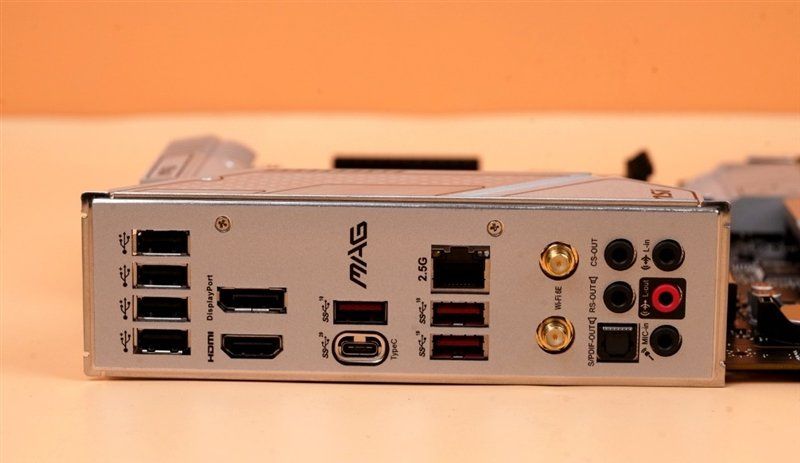 微星MAG B660M MORTAR WIFI迫击炮主板主板还有一个独到之处就是加入了祥硕ASM3241控制芯片,因此扩展出了一个支持USB 3.2 Gen2x2的Type-C接口,能够提供20Gbps的传输速度,是普通Type-C接口的2倍,这在普通的B660这主板上很难看到。