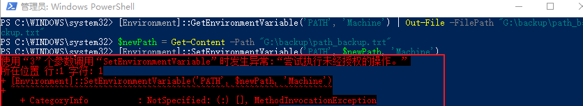 [Environment]::GetEnvironmentVariable('PATH', 'Machine') | Out-File -FilePath "G:ackuppath_backup.txt" -Encoding UTF8