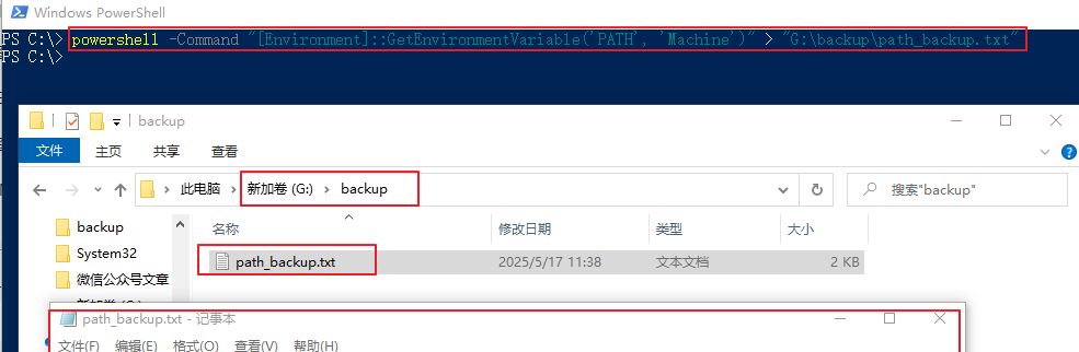保存路径自由定制:修改命令中的 G:ackuppath_backup.txt 路径即可