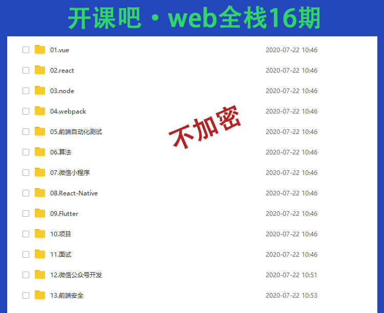 自动发货 开课吧前端高级开发工程师教程web全栈架构培训视频vue项目实战课