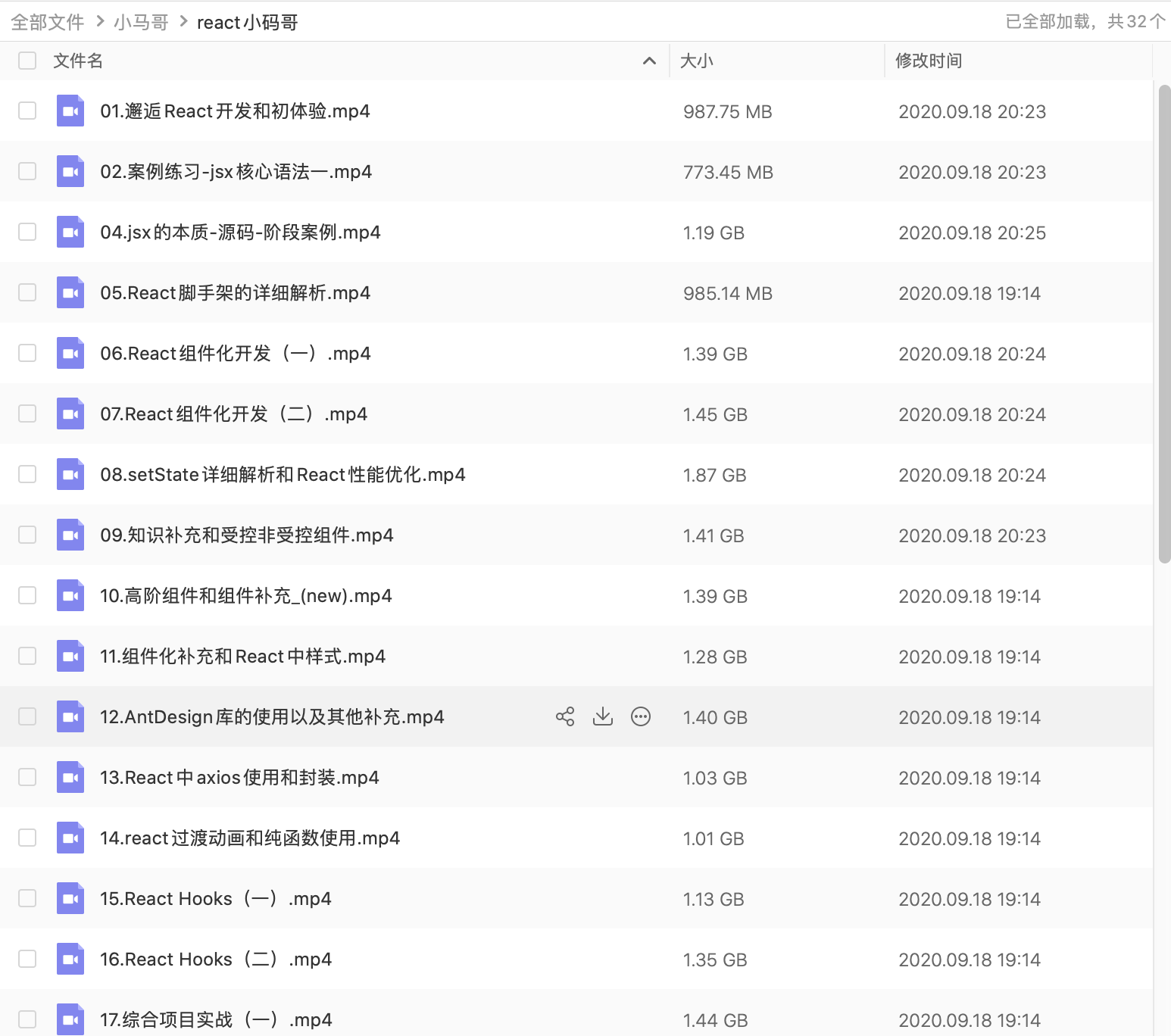 自动发货 小码哥React 视频教程 2020年8月 JSX 组件化 核心开发与实战