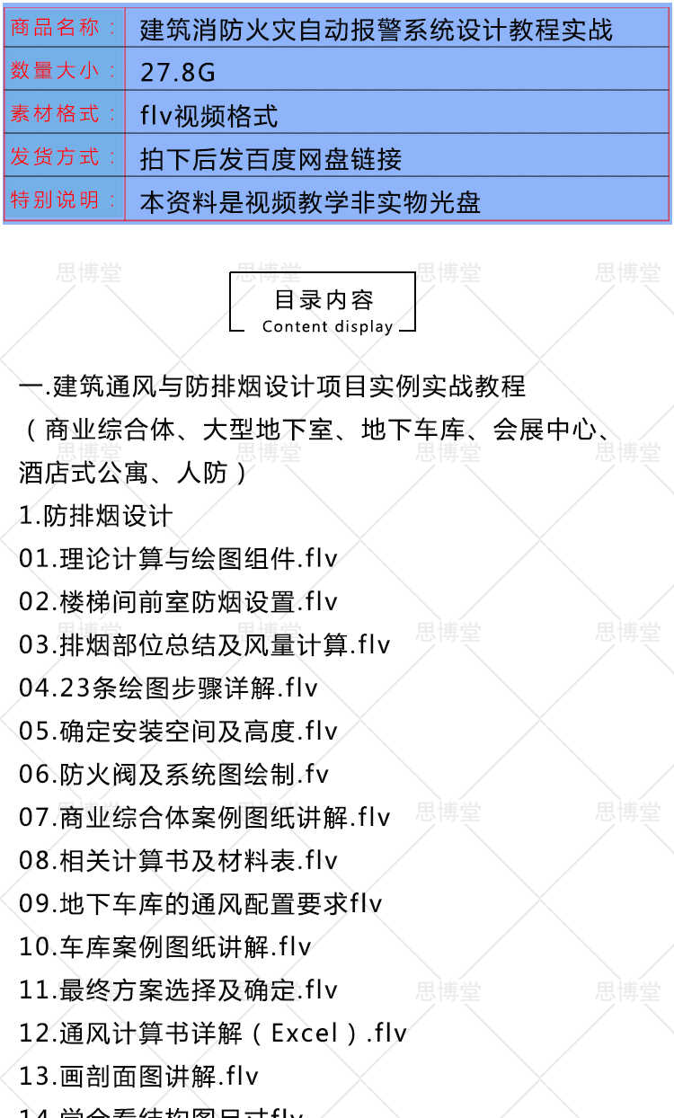 自动发货 建筑消防设计视频火灾自动报警系统水力计算通风防排烟设计教程