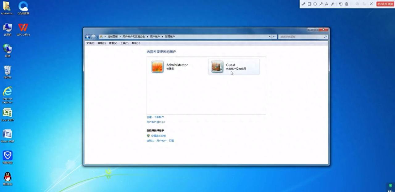 第一我们要打开来宾用户。打开控制面板,点击用户,点击用户账户,点击管理其他用户,点击guest用户,启用来宾用户,点击应用。