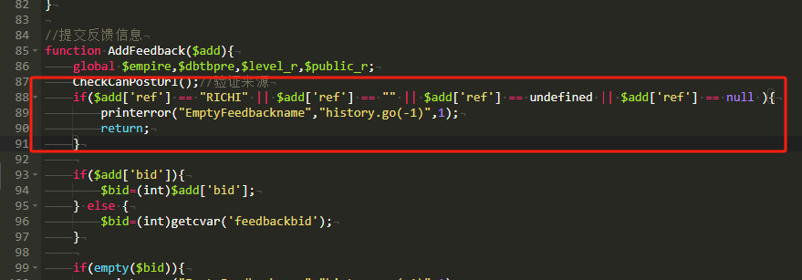 打开e/class/q_functions.php 文件,找到注释 //提交反馈信息 ,这里首先可以验证来源,以免收到大量的垃圾邮件