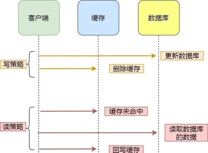 对于读数据,我会选择旁路缓存策略,如果 cache 不命中,会从 db 加载数据到 cache。