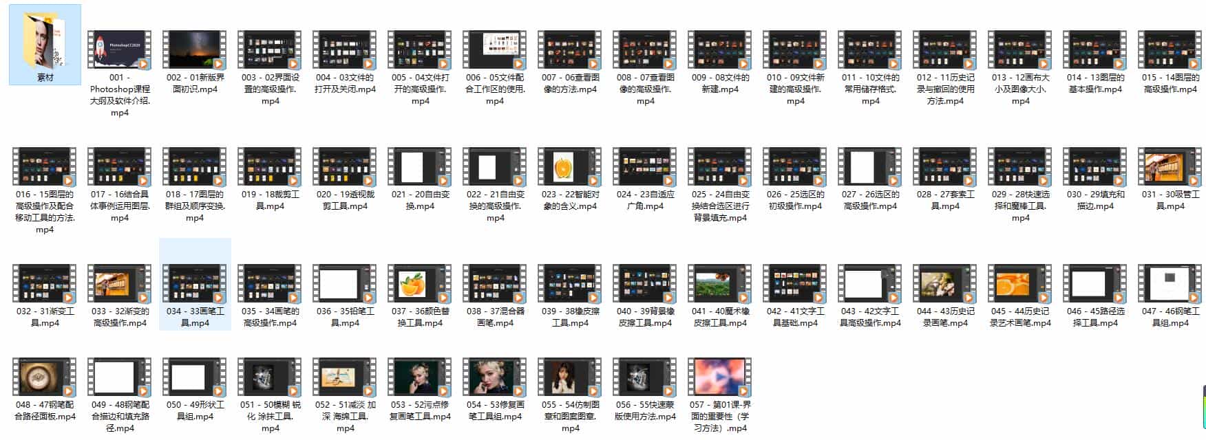 Ps 2020版零基础到精通课程、由张盛陵老师讲解,一共57节课,通过实例操作让学员完全理解并掌握工具的使用、讲解方式通俗易懂、适合零基础学员。 © 版权声明文章版权归作者所有,未经允许请勿转载。如内容涉嫌侵权,请在本页底部进入<联系我们>进行举报投诉!THE END资源下载 如果内容对您有所帮助,就支持一下吧!点赞9 分享QQ空间微博QQ好友海报分享复制链接收藏