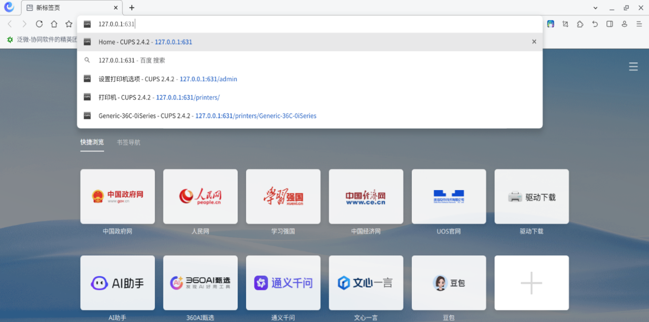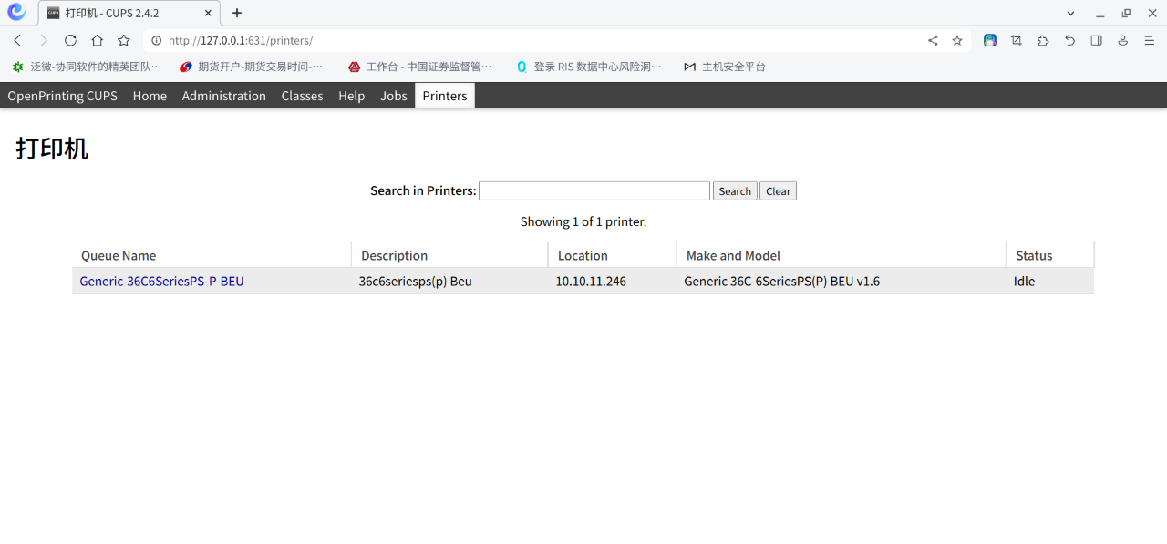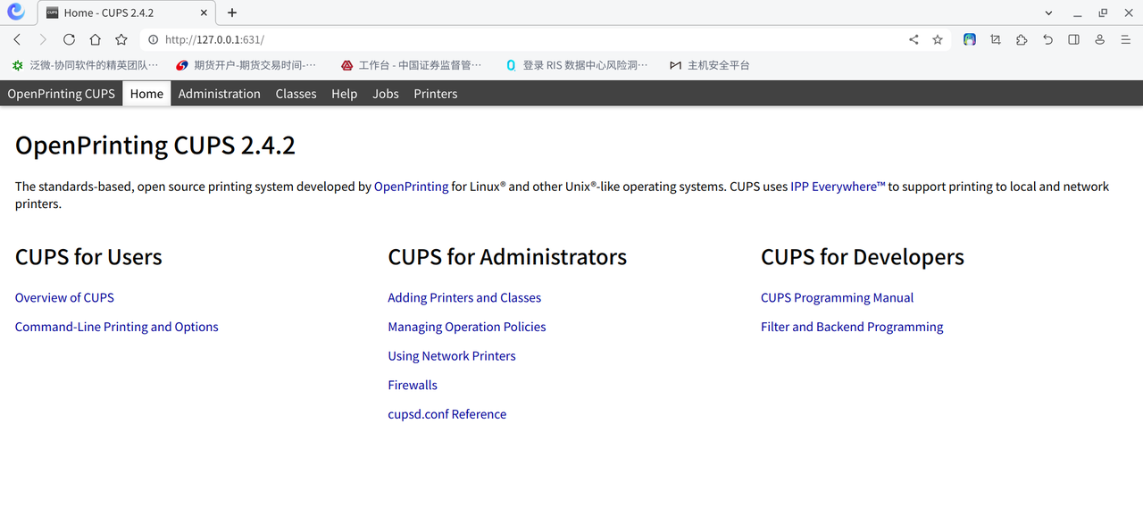 打开浏览器,输入地址 http://127.0.0.1:631。