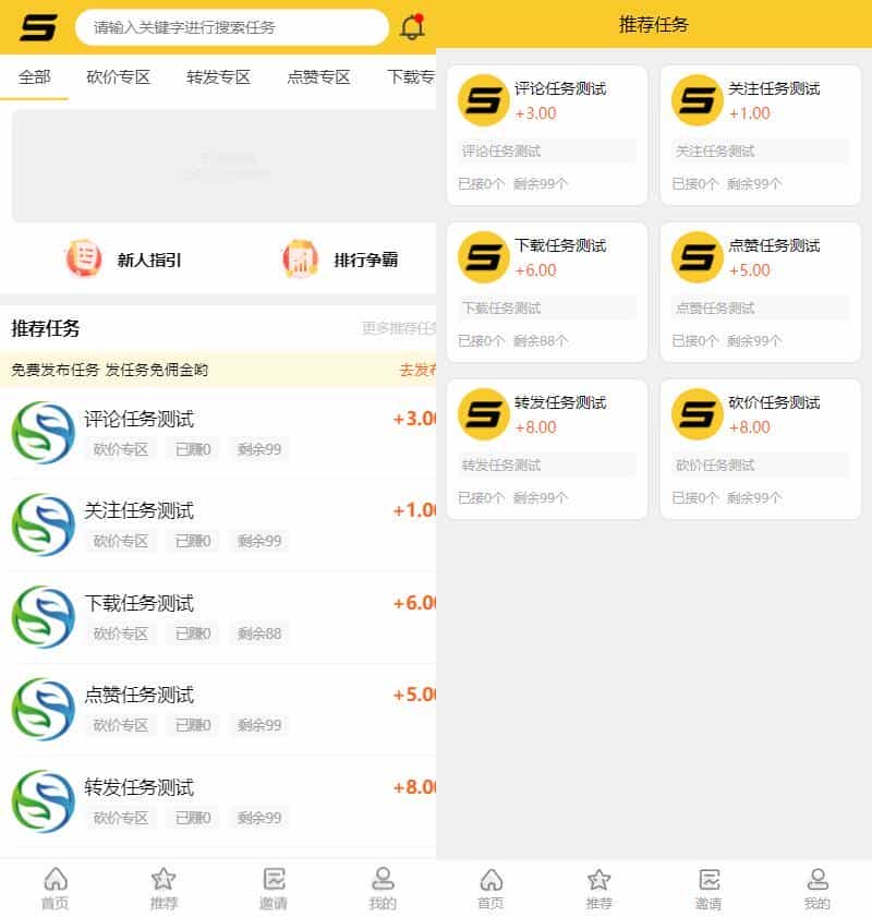 这版是带有用户发布任务功能的,还有信用分评分什么的,挺全面,具体的大家搭建出来看一下就知道。都是OK的。支付对接第三方个人免签,微信支付宝双通道,也挺舒服。去授权版本,第一次打开后台会提示未授权,重新进一下就OK了,源码已经整理完毕,内附详细安装教程,跟着教程搭建就OK。