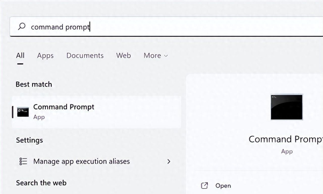 要使用命令提示符启用管理员帐户,请单击“开始”,在搜索栏中键入“命令提示符”,然后单击“以管理员身份运行”。