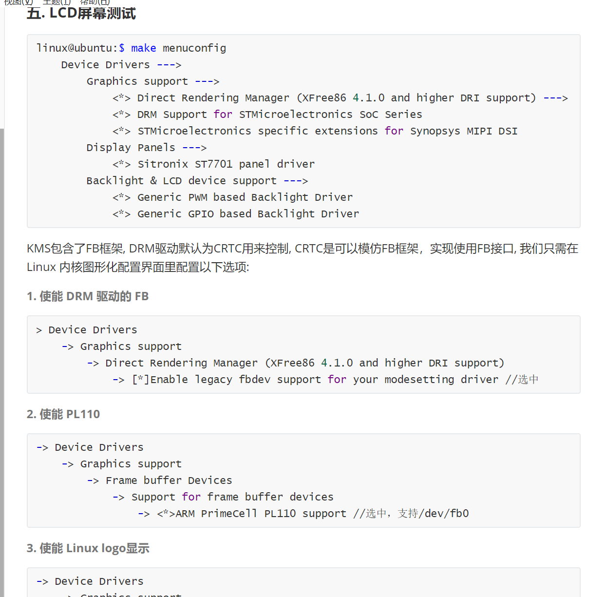 make ARCH=arm menuconfig //层级关系 Device Drivers —> Graphics support —> — 图形配置 |