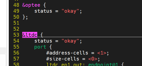 <dc { status = “okay”; port { #address-cells = <1>; #size-cells = <0>; ltdc_ep1_out: endpoint@1 { remote-endpoint = <&dsi_in>; }; }; }; 在port下添加了一个子节点为ltdc_ep1_out remote-endpoint属性是用来告诉ltdc节点输出到那里 |
