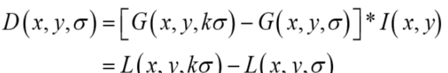 从上式可以知道,将相邻的两个高斯空间的图像相减就得到了DoG的响应图像。为了得到DoG图像,先要构造高斯尺度空间,而高斯的尺度空间可以在图像金字塔降维采样的基础上加上高斯滤波得到,也就是对图像金字塔的每层图像使用不同的尺度参数σ进行高斯模糊,使每层金字塔有多张高斯模糊过的图像,然后我们把得到的同一尺寸大小的图像划分为一组。