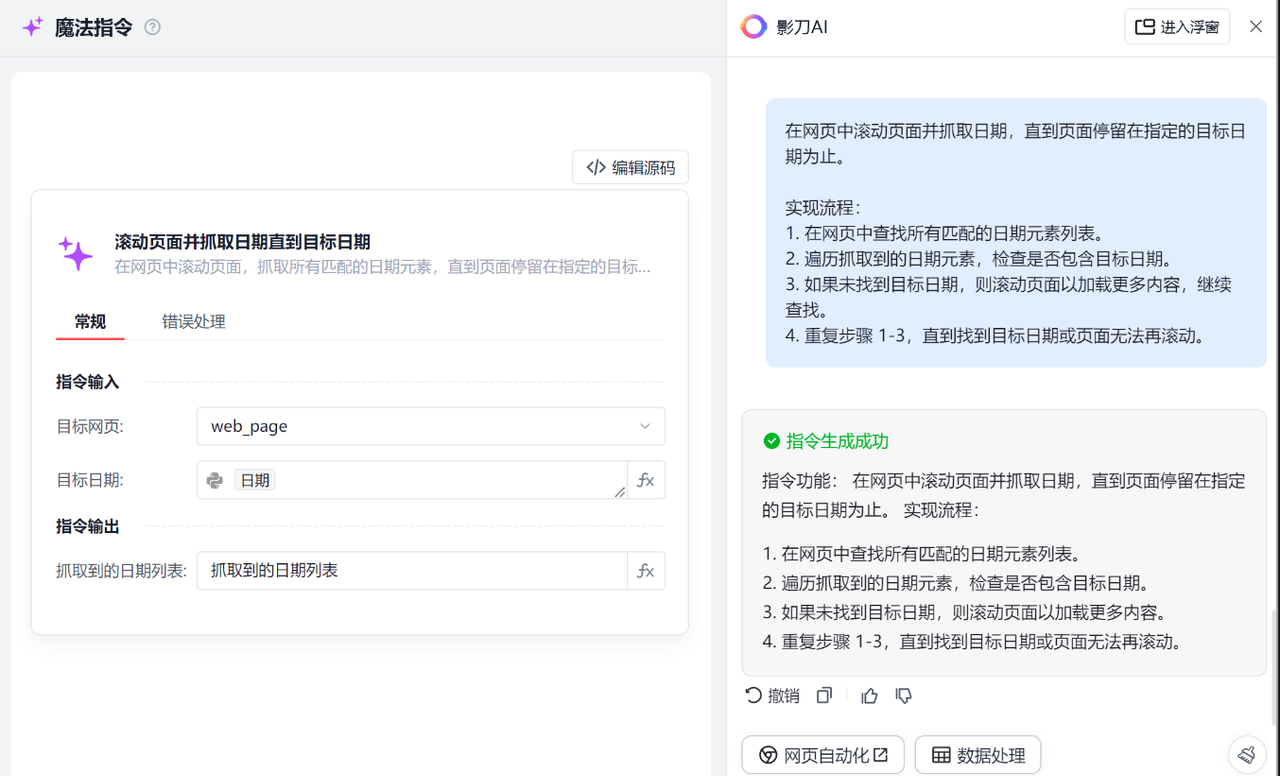 新版魔法指令支持”网页自动化”,头一次试,确实香~