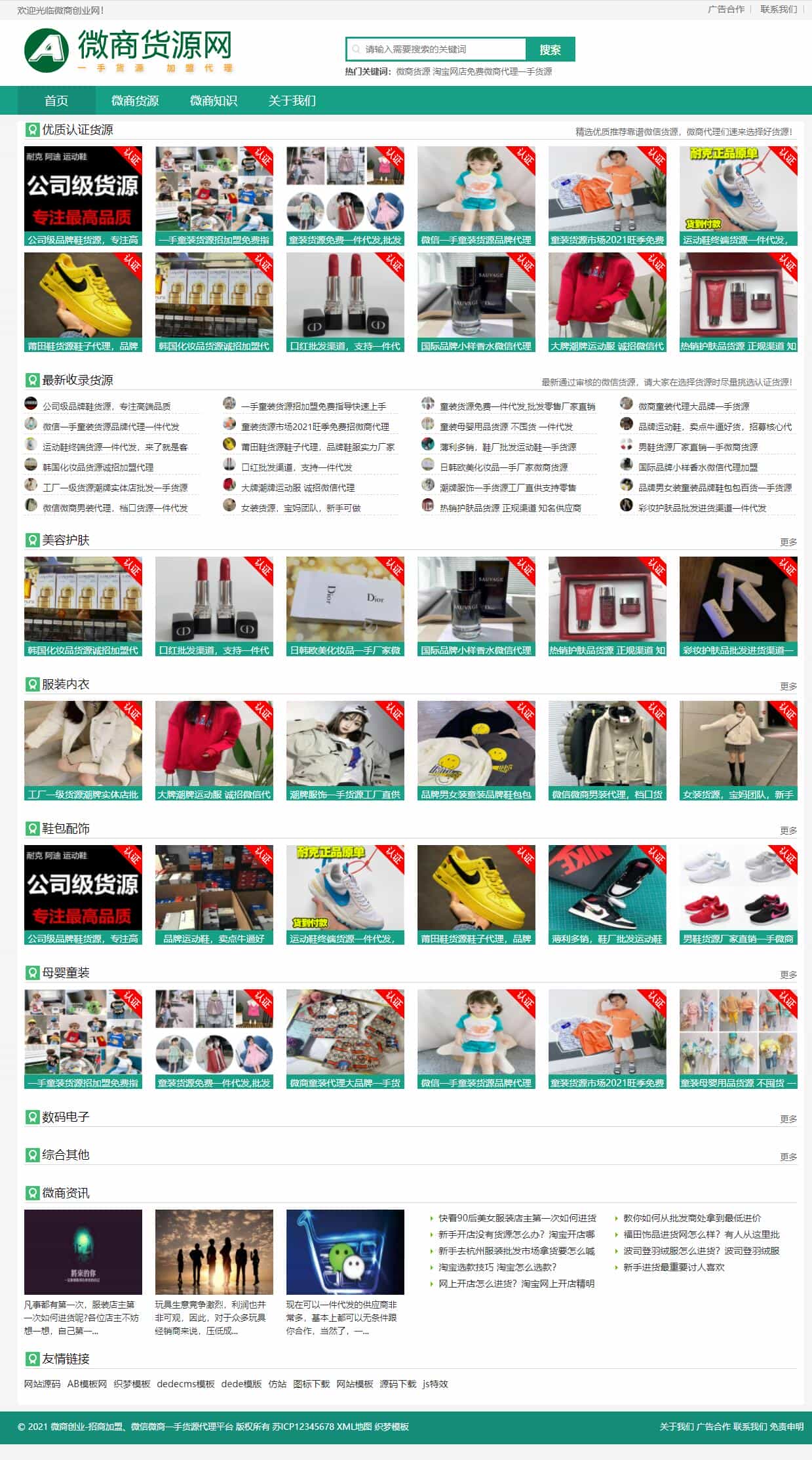 3、适用于微商货源织梦模板、网店微商代理网站模板;