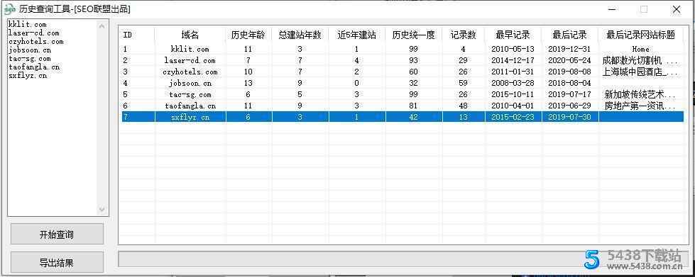 可以查询 域名历史年龄,总建站年数,近五年建站,历史统一度,记录数。