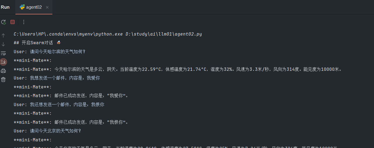 我们再加一个发送邮件的函数,用来实现swarm的智能体转移,完整代码如下: