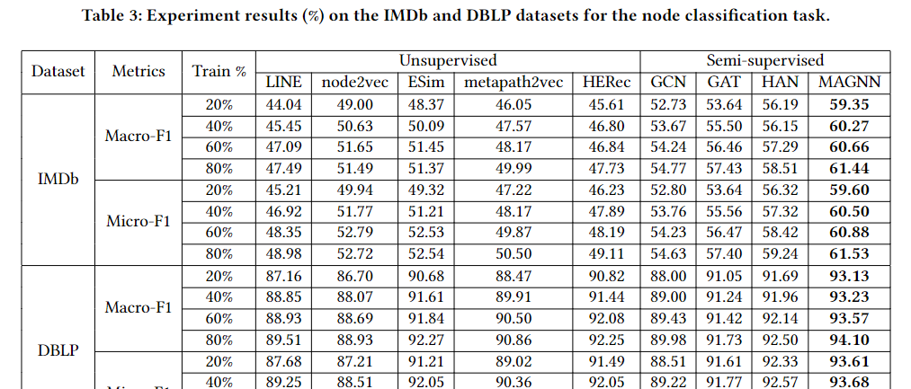但 MAGNN 在 HAN 的基础上仍有约 6% 的提升,验证了一个关键结论: