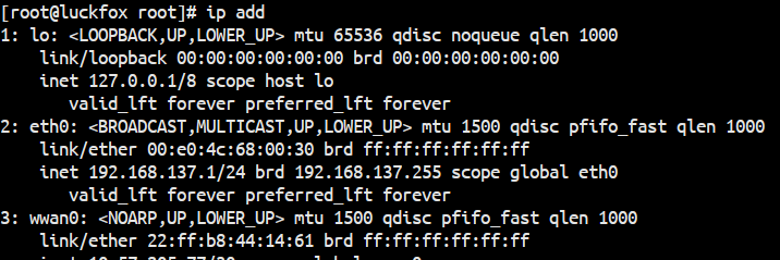 因为在华为AP6050DN无线接入点中配置的静态IP地址为192.168.137.2、网关为192.168.137.1,所以需要将Linux开发板流量出口网卡的IP修改为与无线接入点同一网段,且要为网关的IP,这样才能将移远EC20-CE模块的移动数据流量通过后续NAT转发的方式给到无线接入点。