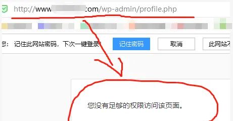到此应该可以访问wp-login.php后台面板页了,输入我们安装数据库时填写的用户名和密码,点击登陆就可以进入后台了。如果显示“您没有足够的权限访问该页面”,这又是什么鬼,也是第一次碰到,网上找了一些攻略,说法许多,试了都不行。